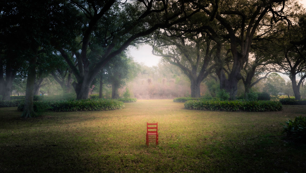 Using a simple object, a chair – something we all use – I’m attempting to create that depth of connection that may otherwise not be there. The series is both a portrait and self-portrait, my endeavor to connect myself and others to the places in the world that I feel a connection to. Every photograph tells a story. The red chair is my way of making the story more approachable.